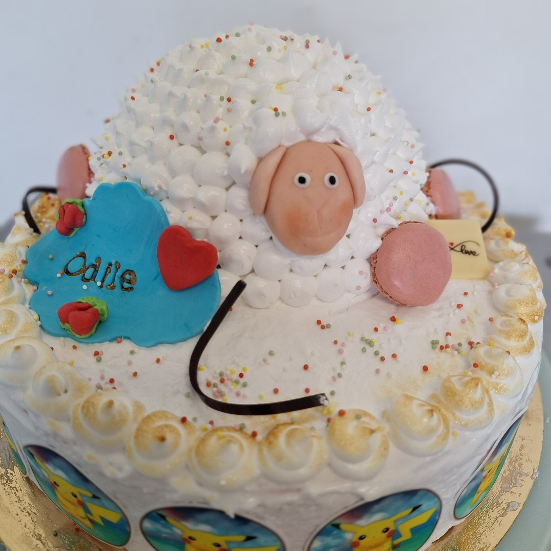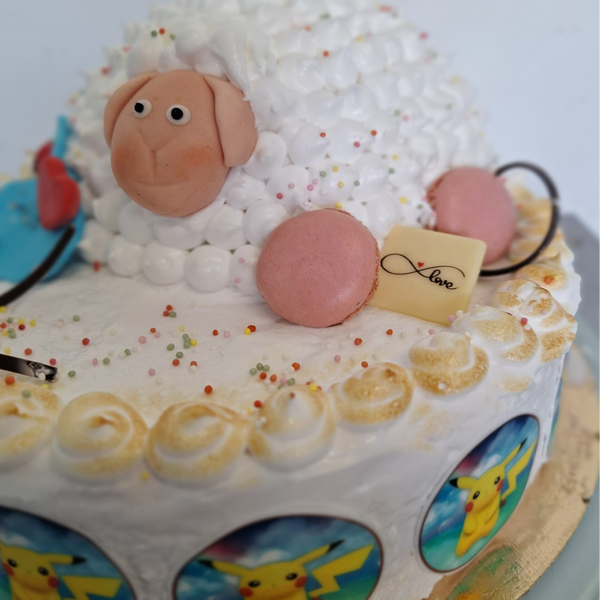 Communie of lentefeest ijstaart met een modern ijslam, afgewerkt met merengue.